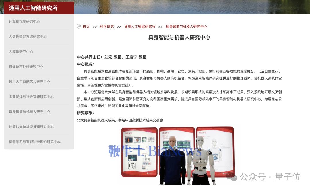 除了以研究院为平台的具身智能设置,北大则将具身智能与机器人研究中心挂靠在人工智能学院下的通用智能研究所。