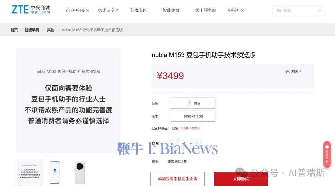 12月1日消息,字节跳动旗下豆包团队正式发布豆包手机助手技术预览版,搭载于字节与中兴联合开发的nubia M153工程样机,售价3499元,仅面向需要体验豆包手机助手的行业人士。
