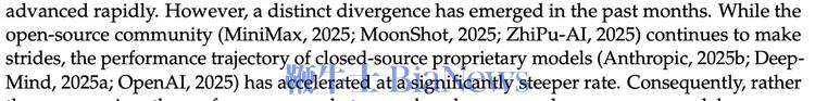 技术报告Introduction部分有句话值得注意,“过去几个月,开源社区虽然在持续进步,但闭源模型的性能轨迹正在以更陡峭的速度加速。差距不是在收窄,而是在扩大。”同时点出了当前开源模型的三个核心短板: