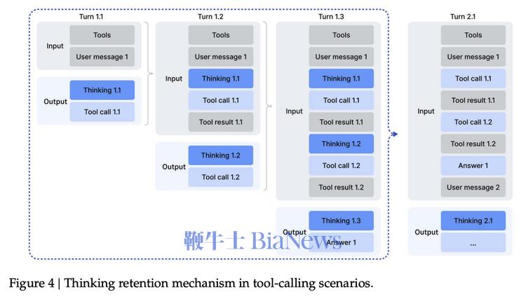 V3.2还有一个重要突破,这是DeepSeek首个将“思考”与“工具调用”融合的模型。之前的推理模型(包括OpenAI的o系列)在思考模式下无法调用工具,V3.2打破了这个限制,同时支持思考模式和非思考模式的工具调用。