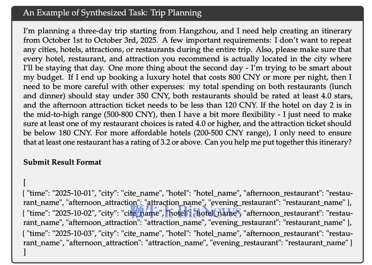 这套流水线的核心设计哲学是“难解答,易验证”。以报告中的旅行规划任务为例:复杂约束组合让搜索空间巨大,但验证方案是否满足约束却很简单。这种特性天然适合强化学习,模型可以通过大量尝试获得明确的对错反馈,不需要人工标注。