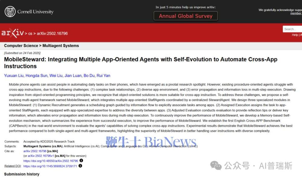 这一构想并非空中楼阁。2025年2月24日,一篇名为MobileSteward的论文指出,传统单App-Agent难以应对多步骤、多App的复杂指令,而其提出的“多Agent协作+中央调度”结构,已在公开的Cross-AppBenchmark中取得领先成绩。从理论与实践角度看,“手机Agent跨应用调用系统级权限”,正是当前AI手机发展的合理方向。字节豆包AI手机的推进,正是这一行业趋势的重要实践落地。