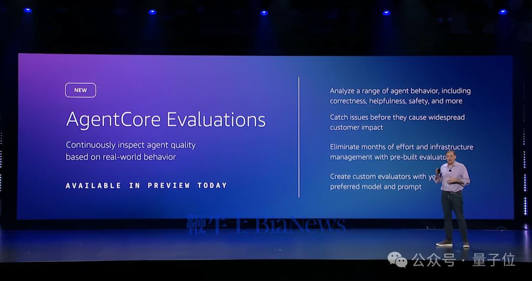 AgentCore Evaluations将这一切自动化,提供13种预置评估器,并能将评估结果直接集成到CloudWatch中。企业可以持续监控Agent在生产环境中的表现,确保其输出始终符合预期。