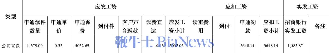 但应扣工资那一栏,罚款占了收入的超过七成。
