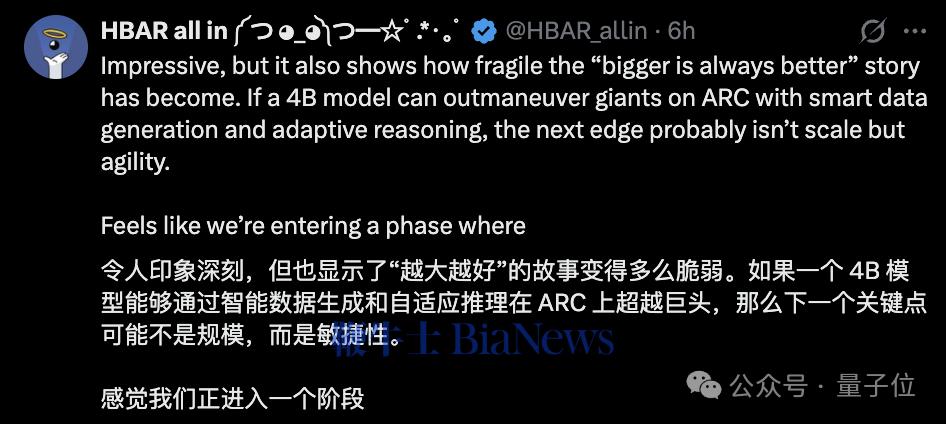 借用这位网友所说,模型或许应该被设计得更加“敏捷”。(转载自量子位)