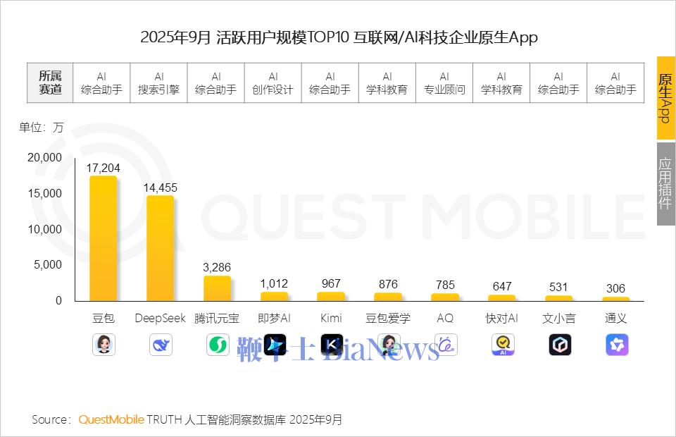 据QuestMobile,文小言截止今年9月的月活为531万,同比腰斩,在国内排名中降至第九,与头部的豆包、DeepSeek、元宝等差距明显,最近还被阿里快速增长的千问超越。