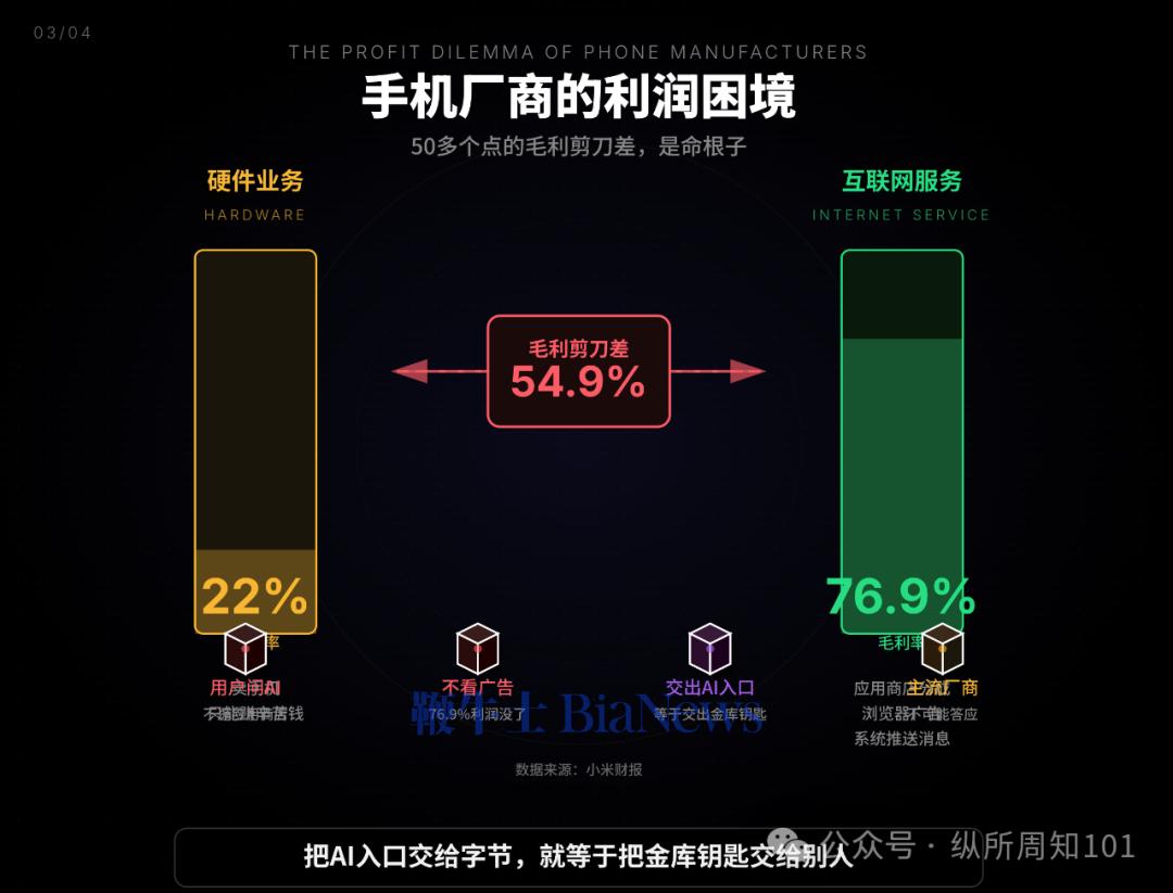 如果用户都去问 AI 了,谁还去逛应用商店?谁还看系统广告?如果不看广告,手机厂商那 76.9%的利润从哪来?
