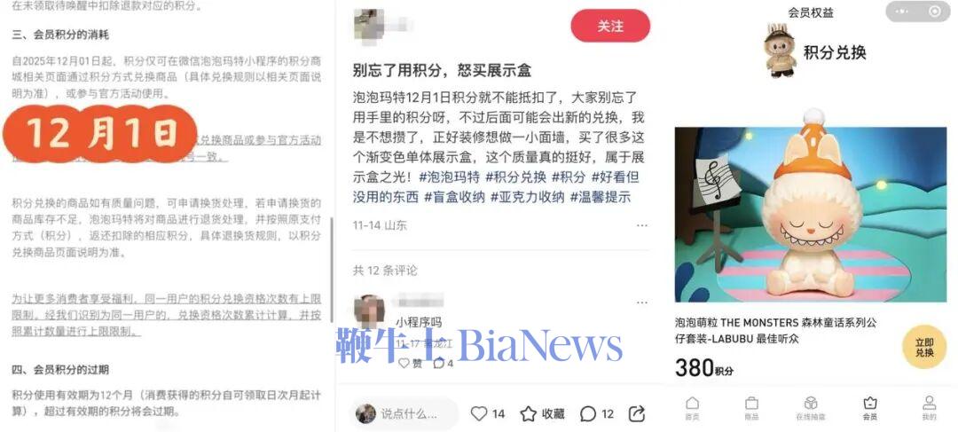 更有细心消费者发现,泡泡玛特的积分兑换现金的规则将在12月起取消,届时积分仅可以在微信小程序的积分商城兑换部分商品。这一规则的取消,在一定程度上打击了黄牛的积极性,新规则下黄牛再无法通过积分套利机制来减少亏损。