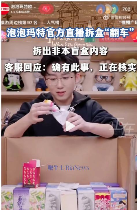 近日,泡泡玛特再次因产品问题“翻车”。起因是在泡泡玛特欧气玩家直播间中的主播帮拆环节中,其岁兔旺系列盲盒出现货不对板的现象,原本红色的包装袋被替换成银色,且内置产品也对不上号,一时间引发消费者热议。