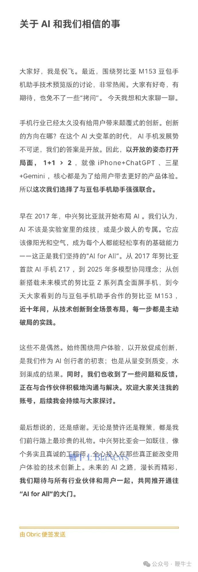努比亚总裁倪飞:AI手机发展势不可逆