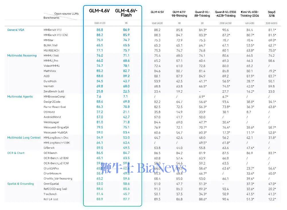 ▲GLM-4.6V系列模型基准测试(图源:z.ai/blog/glm-4.6v)