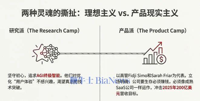 · 研究派(The Research Camp): 这群人坚守着OpenAI的初心。他们追求AGI那个能像人类一样思考、推理的终极智能。他们对优化聊天机器人的“用户体验”不感兴趣,想要的是真正的技术突破。