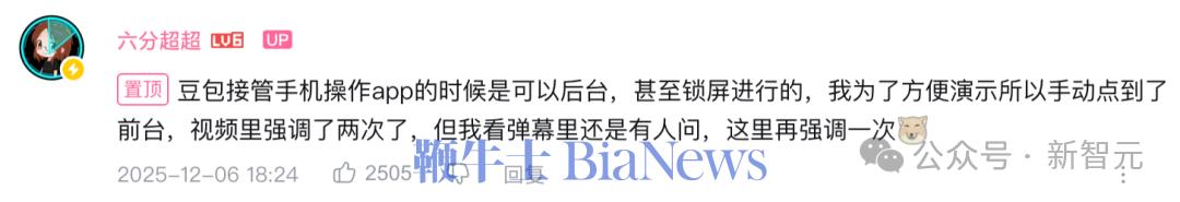 他开启了B站画中画模式,然后让Agent操作主屏,中途再截屏,结果发现,AI截到的画面只有主应用的界面,完全没有悬浮窗。