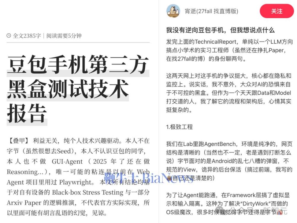 正巧,我们在小红书上吃瓜的时候,意外发现了一篇十分有趣的帖子——《我没有逆向「豆包手机」,但我想说点什么》。