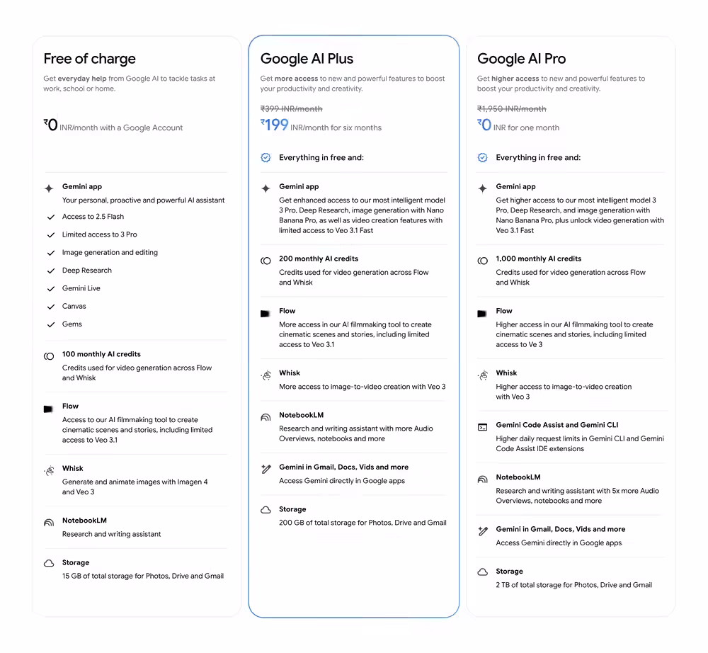 通过 Google AI Plus,印度用户可在 Gemini 应用程序中使用 Gemini 3 Pro 与 Nano Banana Pro 模型以及视频生成、Flow 等创意工具;谷歌生产力套件也将得到 Gemini AI 加持;此外还包含 200GB 云存储空间和对 NotebookLM 的额外访问权限。