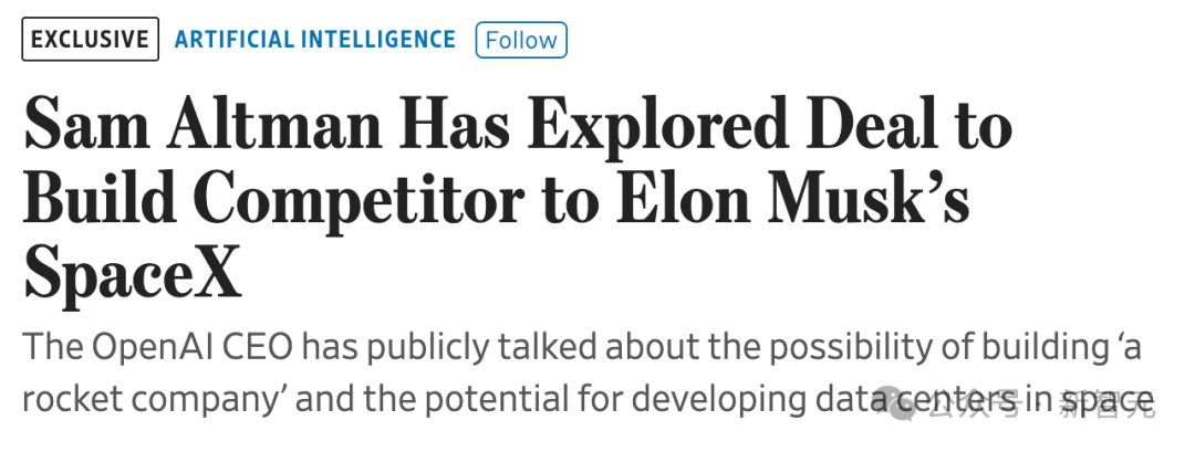 此前爆料称,奥特曼试图收购或合作火箭公司,也希望把AI算力部署到太空。
