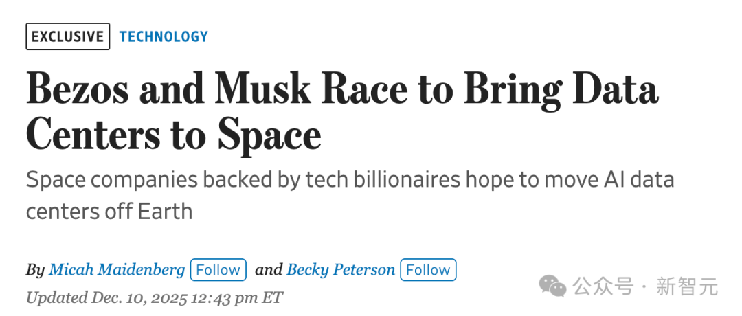 今天,WSJ一篇独家报道,揭秘了马斯克和贝索斯竞相,将其数据中心送上太空。