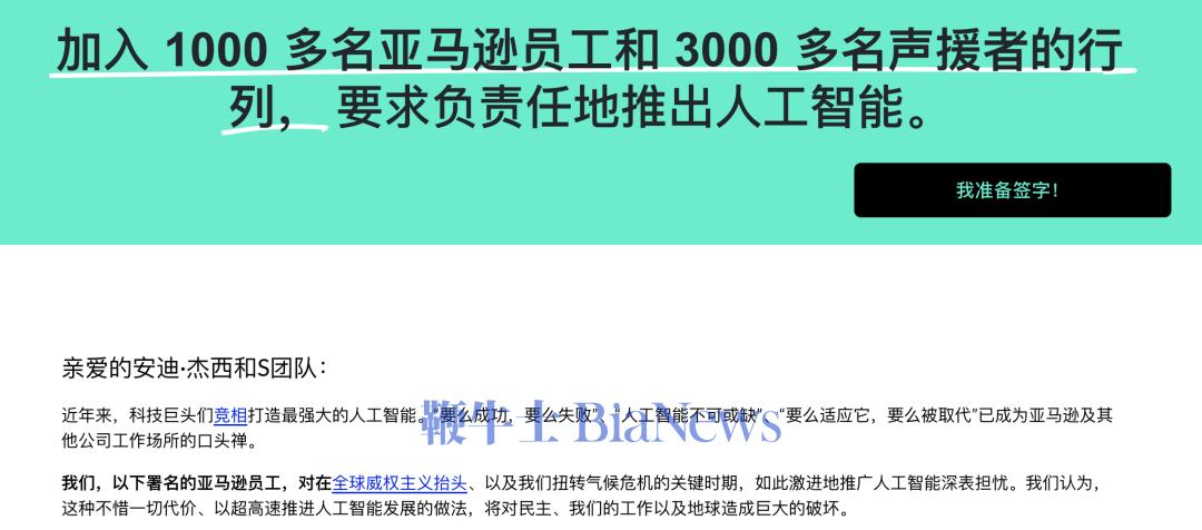 亚马逊员工发起“千人抵制AI”行动 图源:“千人抵制AI”行动官网