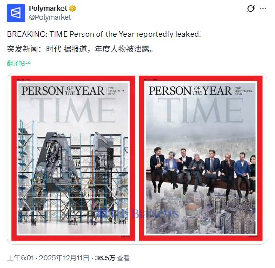 北京时间12月11日晚间消息,《时代》周刊官方宣布,2025年度人物授予“AI构建者”。