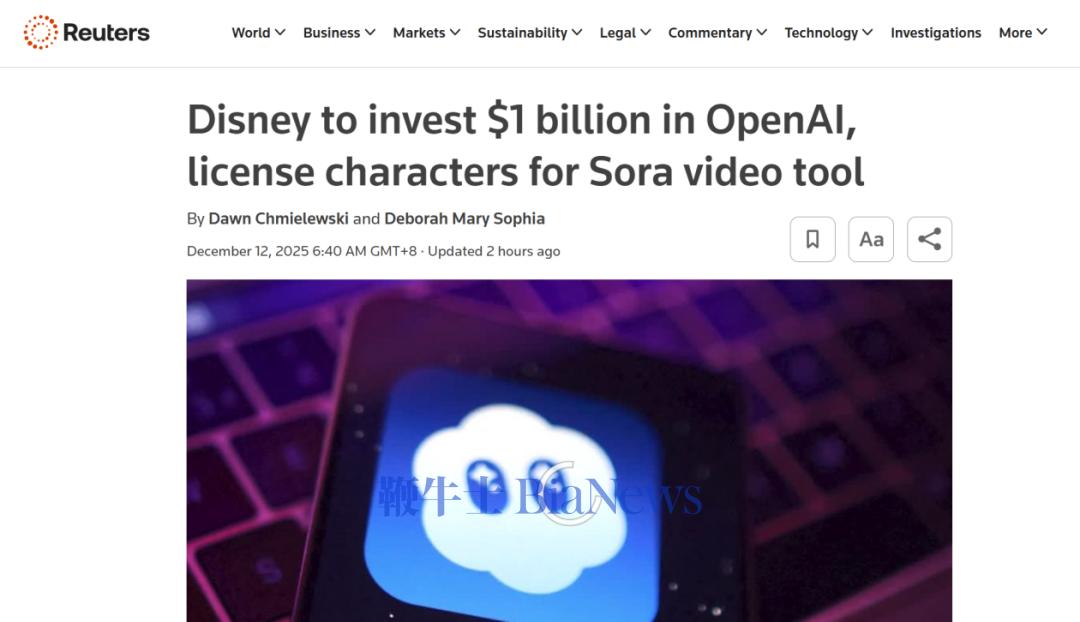 作为合作的重要组成部分,迪士尼将向OpenAI进行10亿美元(按现行汇率折算约合70.73亿元人民币)的股权投资,并获得购买额外股权的认股权证。此次交易仍需完成最终协议谈判、公司及董事会批准,以及满足常规交割条件后方能正式生效。