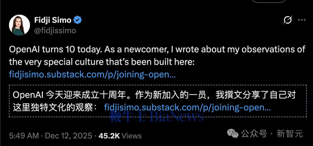 四个月前,Fidji Simo加入「站在AGI门口」的OpenAI,担任应用CEO。