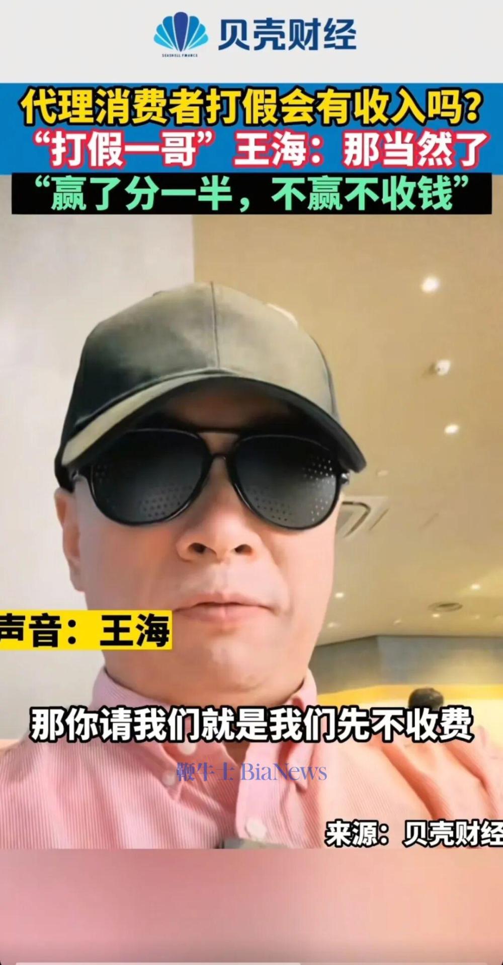 此前王海曾透露,他的团队一般是帮消费者维权后,分走一半的索赔金额。“比如你买了这个玉500块钱,但你打官司请律师可能要花5000。那你可以请我们来帮你维权,你赢了就分一半,不赢就不用给钱。”
