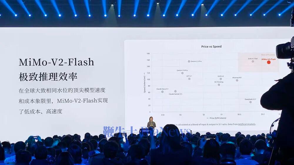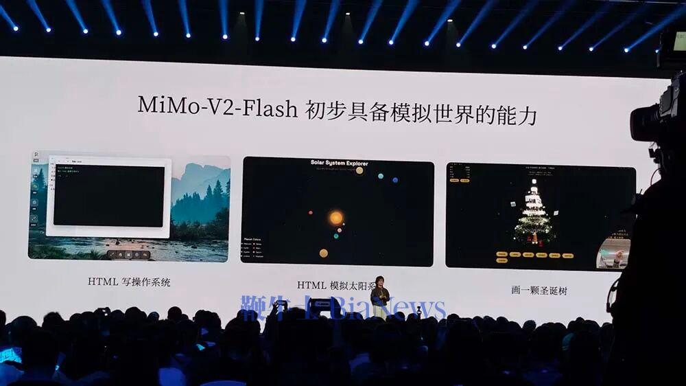 罗福莉一上台就回到了“6亿年前”,她说,AI正以非线性的方式重演人类大脑6亿年的进化史。为什么大模型“智能”起源于语言?在罗福莉看来,语言是人类思维和物理世界在符号空间的“投影”,而大模型成功解码了人类思维在文本空间的投影。小米从“语言”出发,构建了面向Agent时代的语言基座模型MiMo-V2-Flash。在小米看来,超强的代码和工具调用能力是Agent沟通的高效“语言”,围绕极致推理效率设计的模型结构是“高带宽”的Agent协作的关键,全新后训练范式则能够保证高效稳定的扩展强化学习训练。罗福莉特别提到,MiMo-V2-Flash模型并不大,但在代码和Agent测评基准测试中已经达到全球开源模型TOP2。MiMo-V2-Flash的推理效率是其突出优势,在全球大致相同水位的顶尖模型速度和成本象限里,MiMo-V2-Flash实现了低成本和高速度优势。具体来看,小米围绕极致推理效率来设计模型结构,采用了Hybrid SWA架构,固定KV Cache,增强长文推理,此外,团队采用3层MTP推理加速并行Token验证,实现推理速度2-2.6倍的提升。在全新后训练范式方面,团队采用了Dense&Token-Level的强化学习。当前MiMo-V2-Flash已经初步具备了模拟世界的能力,比如通过HTML写操作系统、模拟太阳系、画一颗圣诞树。今天发布会现场,罗福莉宣布MiMo-V2-Flash发布即开源,模型权重、技术报告都开源,API限时免费。对于未来的Agent发展,罗福莉提到,下一代智能体系统,不是一个“语言模拟器”,而是一个真正理解我们世界、并与之共存的“智能体”。Agent执行从“回答问题”到“完成任务”,具有记忆、推理、自主规划、决策、执行的能力。Omni感知统一多模态感知,为AI理解物理世界打下基础,嵌入眼镜等智能终端、融入日常工作流。在通往AGI的路上,罗福莉团队希望补全缺失的演化拼图,单纯Scaling UP参数量不够,他们要让LLM回到“演化课堂”,补上它跳过的关键学习步骤。简单来说,他们非常看重AI与真实世界的交互,强调多模态。罗福莉特别提到,相比生物演化的稳固根基,AI的发展有些像“空中楼阁”。在她看来,AI进化的下个起点,一定是有一个能跟物理世界交互的模型。AI不仅要看懂画面,还要理解背后的物理规律;AI不仅要推理文本,而是理解世界的运作逻辑。罗福莉说,这一观点并非共识,行业中也有不少人认为语言就可以实现最终的AGI,比如Ilya。在她看来,算力和数据也并非最终的护城河,真正的护城河,是科学的研究文化与方法,是将未知问题结合模型优化转化为可用产品的能力。罗福莉现场也开启了“招聘会”,她提到,小米大模型Core团队是研究、产品与工程深度耦合的年轻团队,“小而美”却充满创业精神,他们极度好奇、追求真理。罗福莉提到,在她刚刚开始研究时,开源模型与顶尖模型的代差有三年,而今天这一差距已经缩短到了“数月”。他们相信开源的价值,开源的价值本质上是一种分布式的技术的加速的主义。在罗福莉看来,开源是实现AGI的普惠化,是确保所有人类的智慧共同进化的唯一路径。未来,从数据的极致压缩,到算法的范式创新,再到与物理空间的深度链接,小米与全球AI共同定义未来。95后罗福莉本科就读于北京师范大学计算机专业,硕士毕业于北京大学计算语言学研究所计算语言学专业。她曾在阿里巴巴达摩院主导开发了多语言预训练模型VECO,并推动了AliceMind的开源工作,2022年入职DeepSeek,参与了MoE大模型DeepSeek-V2的研发。集诸多光环于一身,来到小米的罗福莉,其动向一直是业内关注的焦点。