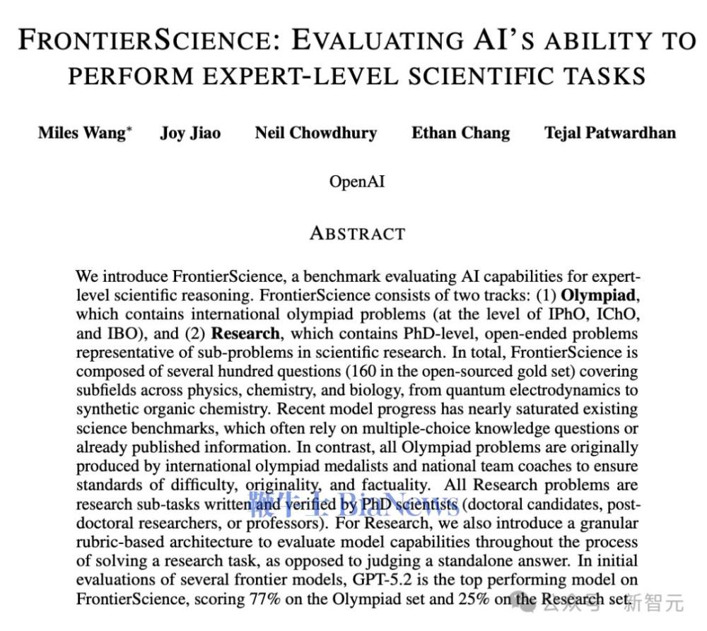 【新智元导读】OpenAI最新发布的FrontierScience基准,试图用真实的博士级难题,从物理、化学、生物三个维度上考验AI。真相是残酷的:在没有唯一标准答案的科研实战中,AI作为「顶级做题家」,距离真正的科学家,还差得远。