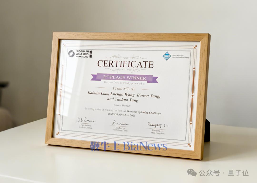 12月17日,在香港举办的全球图形学领域备受瞩目的顶级学术盛会SIGGRAPH Asia 2025上,摩尔线程在3D Gaussian Splatting Reconstruction Challenge(3DGS重建挑战赛)中凭借自研技术LiteGS出色的算法实力和软硬件协同优化能力,斩获大赛银奖。