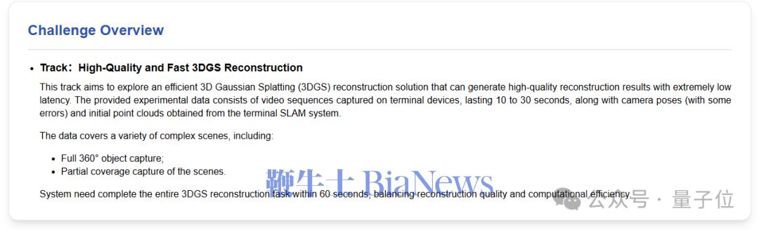 参赛者需在60秒内,基于主办方提供的真实终端视频序列(10–30秒)、存在误差的相机轨迹以及终端SLAM点云,在极短时间内完成完整的3DGS高质量重建。