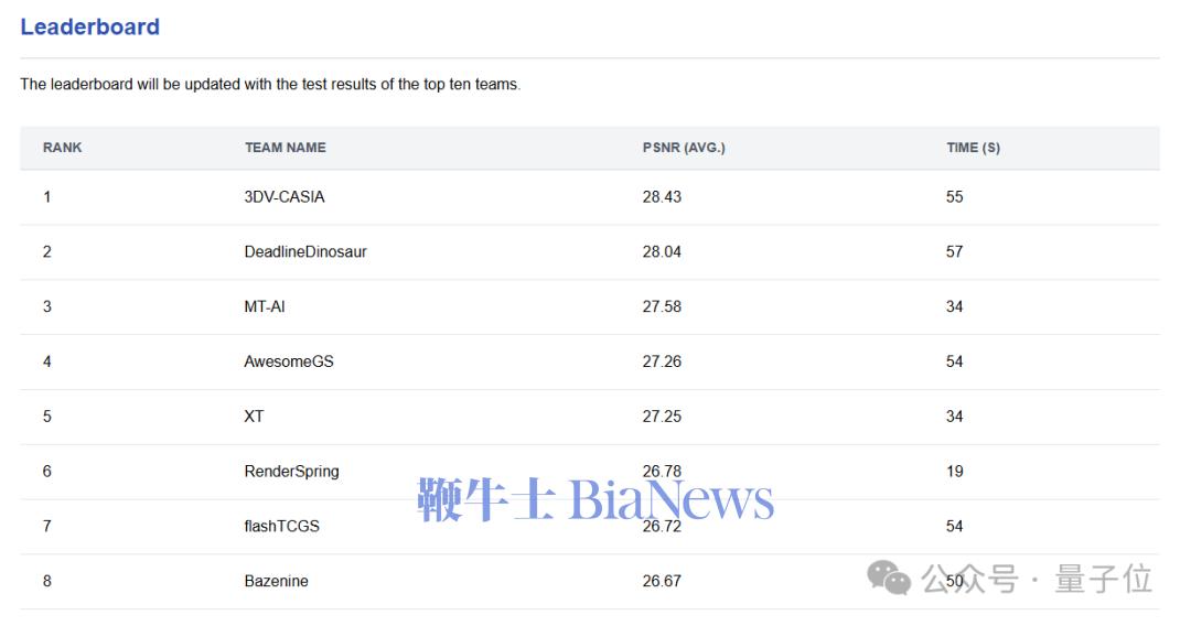 目前3D Gaussian Splatting Reconstruction Challenge(3DGS重建挑战赛)的结果及数据集已向全球公开,相关资料可在SIGGRAPH Asia官方网站获取(https://gaplab.cuhk.edu.cn/projects/gsRaceSIGA2025/)。