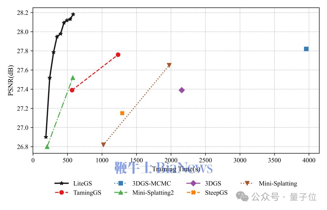 在达到与当前质量最优方案同等水平时,LiteGS可获得高达10.8倍的训练加速,且参数量减少一半以上;在相同参数量下,LiteGS在PSNR指标上超出主流方案0.2–0.4dB,训练时间缩短3.8至7倍。