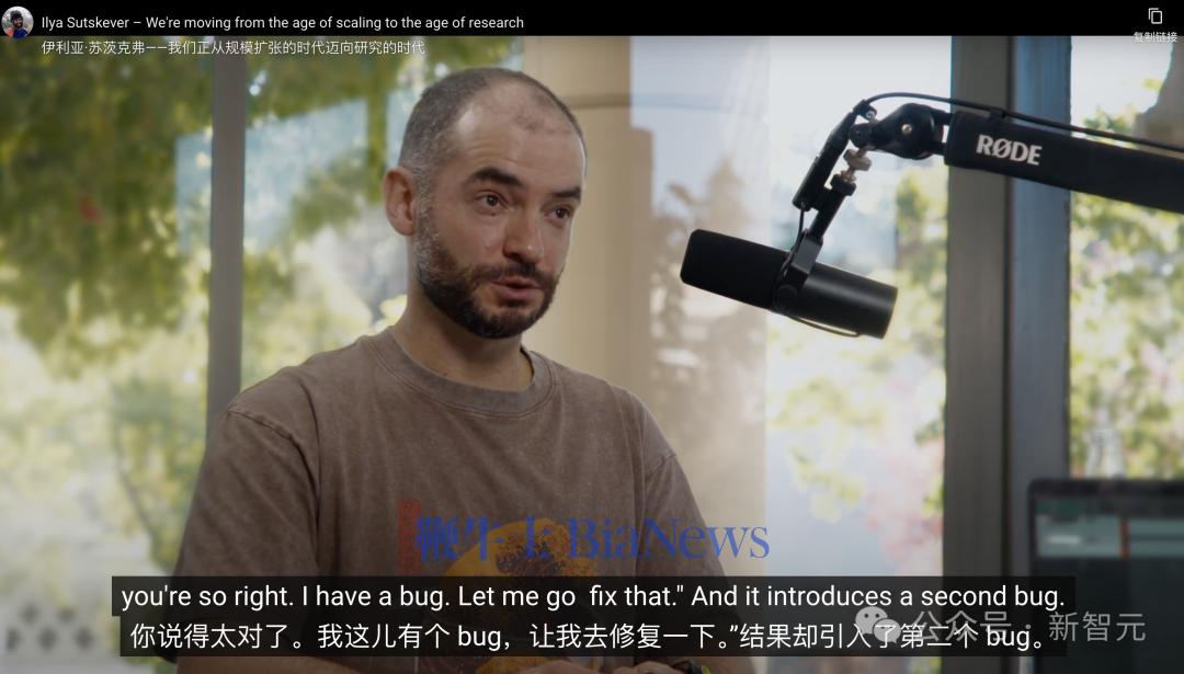 他在谈到为什么目前依赖Scaling(堆算力和数据)越来越难推动AI进展时,提到了一个关于模型在修Bug时陷入无限循环的例子: