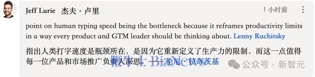 就像网友Jeff Lurie所言,Embiricos提出了「人类打字速度瓶颈问题」,重新定了的生产力的限制。