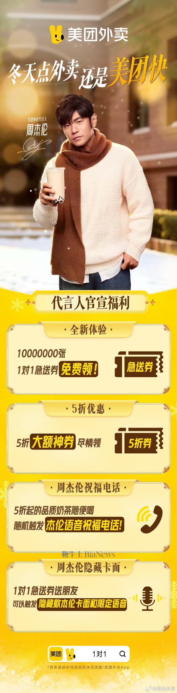 12月18日,美团官宣美团外卖全新代言人周杰伦。