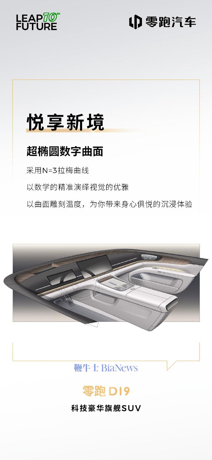 今日,零跑汽车官宣,零跑D19内饰设计概念首度公开,其采用双层叠环绕座舱和超椭圆数字曲面。