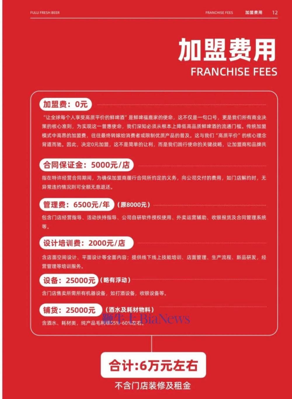 整体模式来说,鲜啤福鹿家确实算一门 “ 轻薄 ” 的生意,0 加盟费的噱头听起来着实诱人。