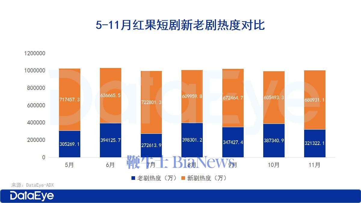 11月付费大盘热度有所下降,主要由于爆款率较上期有所下降,热度在中腰部的微短剧数量反而有所上升。同时百强热剧中新剧31%的涨幅也凸显了市场供给活力。
