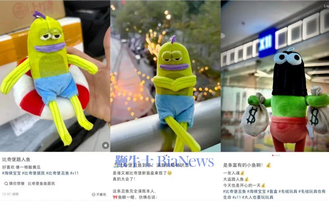 据观察,这一波在社交媒体上爆火的IP是更能贴合当代年轻人精神内核的丑萌IP。之所以备受欢迎,是因为外形足够丑和怪。“这些(海绵宝宝)丑鱼看上去就是一副被生活榨干了灵魂的样子,很符合当代打工人的精神状态。”潮玩爱好者瓦力告诉剁椒Spicy,“好看的玩偶不一定买,但丑的一定要拿下。”