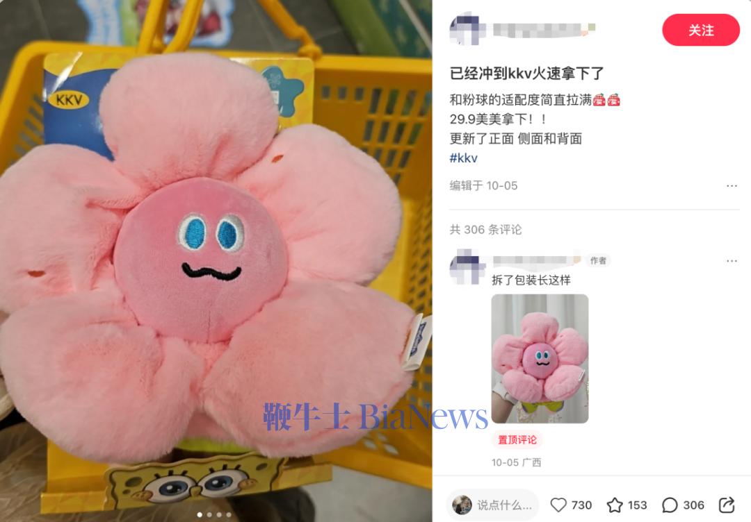 上述引起共鸣的IP联名系列,正是来自海绵宝宝与KK集团旗下全球潮玩集合品牌X11的联名新品“比奇堡路人鱼毛绒盲盒”,一经推出便引发全网疯抢;而在KK集团旗下另一品牌KKV,围绕生活方式,与海绵宝宝推出的“比奇堡的居民们演我一天”IP联名产品,亦同样受追捧,引发粉丝“玩梗式”种草。海绵宝宝与KKV共创的多个生活周边产品,均出现了超预期的销量增长。