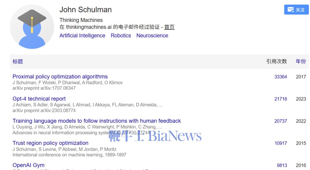 Schulman于2024年8月起短暂加入了Anthropic,之后又加入OpenAI 前 CTO Mira Murati 创办的Thinking Machines Lab,并担任首席科学家。