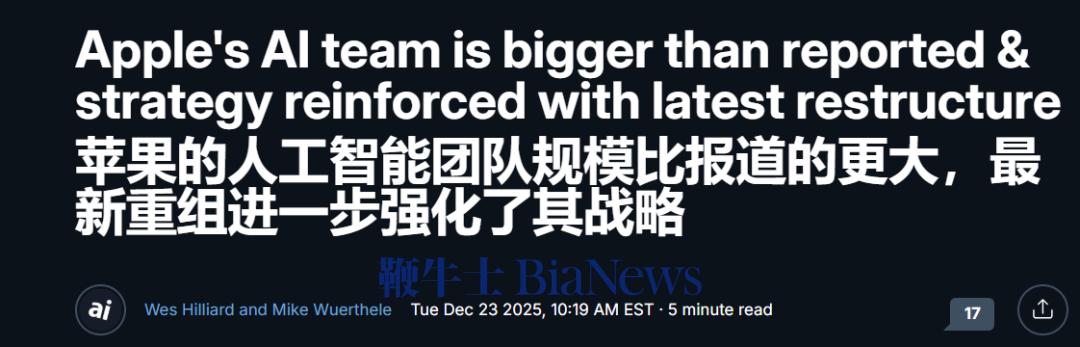 不过市面上有一些传言,比如“苹果的 AI 团队大幅缩水”,这显然就是一个误读了,更多属于来自外部的推测。