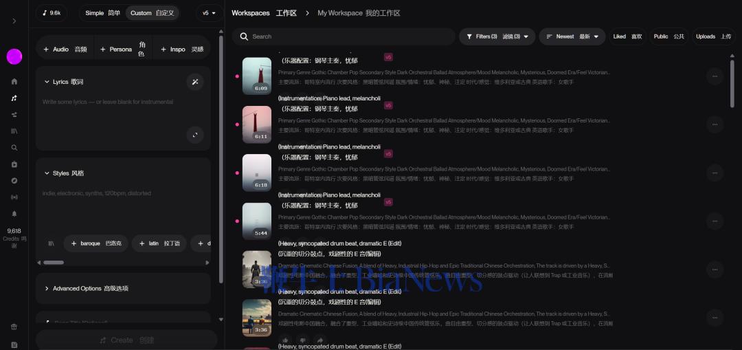 其更新速度也在不断加快。Suno最新发布的V5模型,在音色、咬字、情绪等方面接近真实人声。它还推出了Suno Studio,内置多轨编辑功能,开始成为诺亚这样专业音乐人手中的一个效率工具。