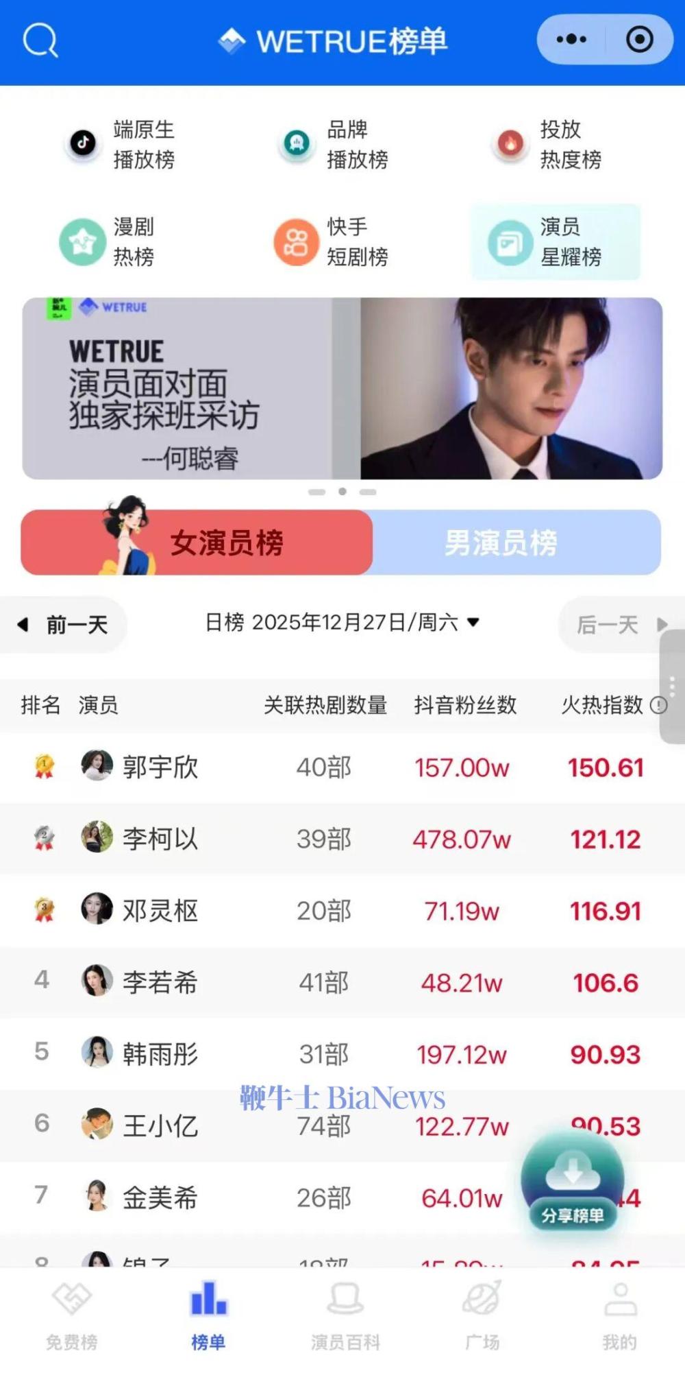 光环之下,短剧演员可能是最焦虑的职业之一。短剧项目周期很短,作品和演员热度随之快速变化,短剧演员的排名以天为单位更新。