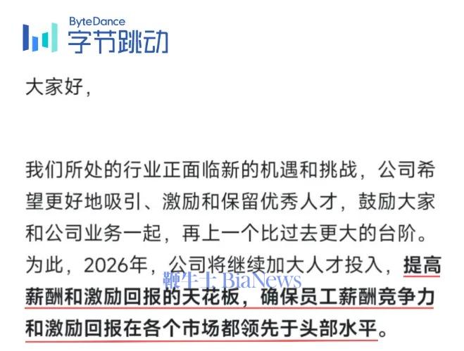 近期,有消息称,字节跳动实习生迎来了全面涨薪,一位实习生的日薪最高可达500元。此消息一出,便迅速在网络上引发热议。不过,这似乎也在意料之中。去年12月,字节跳动在宣布给全体员工涨薪之际,就表示,也将同步提升实习生的薪资标准。具体来看,彼时,字节跳动发布内部全员信表示,为了更好地吸引、激励和保留优秀人才,公司将继续加大人才投入,确保员工薪酬竞争力和激励回报在各个市场都领先于头部水平。其中,字节跳动表示,薪酬方面,公司调薪投入将比上个周期上涨1.5倍。同时,薪酬发放将提高现金占比,减少期权/RSU占比。绩效奖金方面,公司奖金投入将比上个周期上涨35%,用于提升全年绩效M及以上的激励月数。整体来看,字节跳动此次涨薪的幅度之大,在当下的互联网“降本增效”大环境下,显得格外突出。不过,回溯字节跳动的发展逻辑,我们便可以发现,这一举动实际与其企业文化一脉相承。自始至终,字节跳动都格外重视人才的培养。在2024年11月,其就曾宣布将加大对高绩效人才的激励力度,并针对高绩效员工发放更多期权。值得一提的是,在字节跳动宣布给全体员工涨薪后不久,京东也发布了2025年年终奖发布计划。据京东官方消息,2025年升级为19薪的部门内,年度绩效A+的同事可以获得10倍月薪年终奖,也就是全年22薪;年度绩效A的同事可以获得9倍月薪年终奖,也就是全年21薪;而年度绩效B+的同事也可以获得7倍月薪年终奖,也就是全年19薪。而在2025年升级为20薪的部门内,年度绩效A+的同事能够获得12倍月薪年终奖,即全年24薪;年度绩效A的同事能够获得10倍月薪年终奖,即全年22薪;年度绩效B+的同事能够获得8倍月薪年终奖,即全年20薪。除此之外,采销部门的同事在2025年可以达到平均25薪,在2026年可以达到26薪,且上不封顶。事实上,近年来,京东就一直在提升员工的工资水平。例如,2021年至2023年期间,京东将员工的平均年薪由14薪逐步提升到了16薪。2024年起,京东采销等一线业务人员的年固定薪酬大幅上涨近100%。在去年6月的一次分享会上,刘强东坦言,“我会给兄弟们涨薪,现金收入我会不断地涨,涨了七次,一年半的时间,现金收入再差的人也都涨了350%,P5以上的员工基本上就是翻倍。”此外,值得一提的是,京东入局外卖之后,就于去年8月,为15万全职骑手全额缴纳了五险一金。而前段时间,京东还宣布,未来5年将投入220亿,通过租赁、自建以及住房保障基金支持等方式,提供15万套“小哥之家”,进一步改善外卖骑手和快递小哥的居住条件。显而易见,京东始终将提升员工薪资水平以及福利待遇,放置于公司发展的战略高地。而这一举措,也可谓是精准切中了组织发展的脉搏。其中,极具竞争力的薪资待遇体系,能在一定程度上稳定军心,提振团队士气,同时也构筑了强大的人才磁场,为公司的持续发展注入源源不断的新鲜血液。