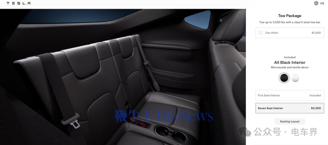 特斯拉2019年推出Model Y时,便宣布将提供可选的7座第三排配置。