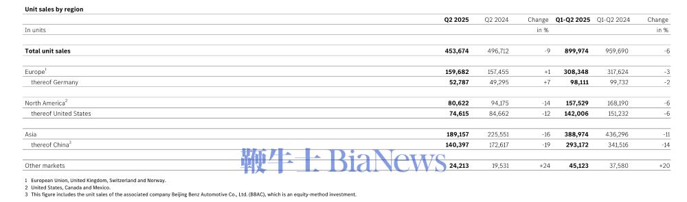 ▲2025年上半年奔驰乘用车在不同市场交付量
