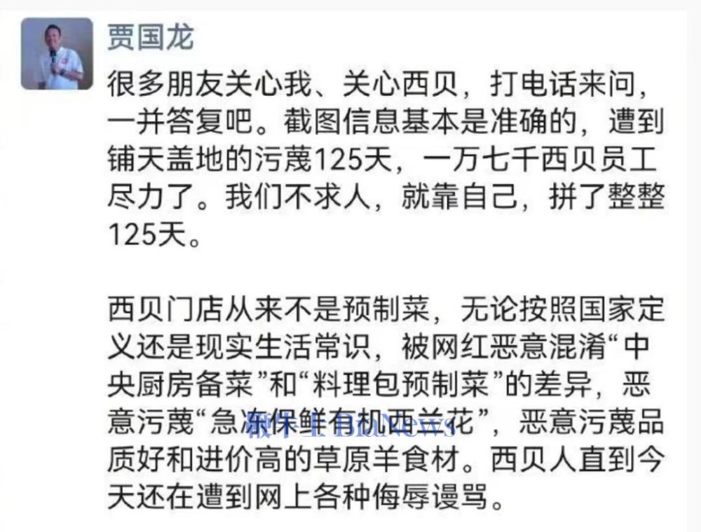 说这话的,是西贝创始人贾国龙。最近,他频繁露面,一边道歉,一边勾勒出一个悲情退场的背影。听起来,像是认输了。