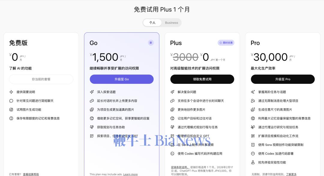 如果你是 Plus、Pro 或企业版的付费用户,那么恭喜你,你的界面依然会保持纯净;但如果你打算尝试刚刚推出的月费仅 8 美元的 ChatGPT Go 订阅服务,那么你依然属于被广告覆盖的目标人群。