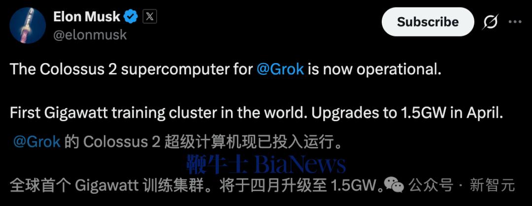 马斯克一早激动官宣,专为训下一代Grok打造的「超算巨兽」Colossus 2,今天正式上线。